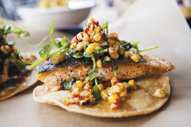 Take his signature In Cod We Trust, a fresh white-corn tortilla from Kensington’s La Tortilleria generously piled with beautifully battered wild Atlantic cod, pickled red cabbage and tart Granny Smith apple. A healthy squirt of lime and lashings of both mellow crema fresca and what chef calls Voltron sauce (a spicy tamari-based concoction named for the 80s anime super-robot, the 14-year-old informs us) send the sustainable fish into overdrive.