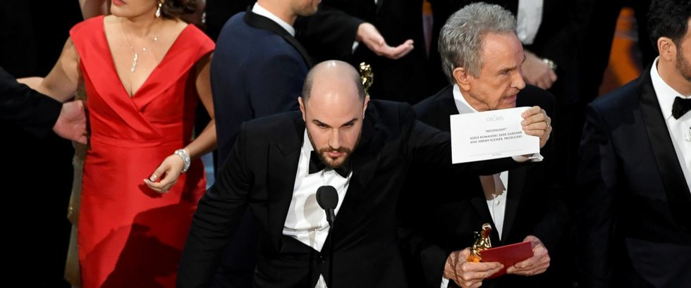 After about three hours and 40 minutes of hacky jokes and endless clips, broken up by the occasional surprise win or heartening speech, the 89th Academy Awards suddenly became riveting television when the producers of best picture winner La La Land were interrupted in the middle of their acceptance speech – and told that, in fact, the real winner of the top Oscar was Moonlight.
