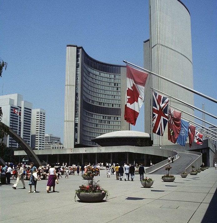 By 2007, 42 years after its opening, Nathan Phillips Square’s gleaming modernist ambitions had been weathered by time and neglect, by changing tastes and an acknowledgement that its grey concrete moonscape was at least somewhat anti-human. But instead of starting over, the city embarked on a project it pointedly called a “revitalization” – not a “redesign” – selecting Plant Architect Inc. and Shore Tilbe Irwin & Partners (now Perkins + Will) to breathe new life into it. Theirs was arguably the least radical of the finalists’ proposals, tweaking the original square just enough to warm it through new elements of plants, glass and wood.