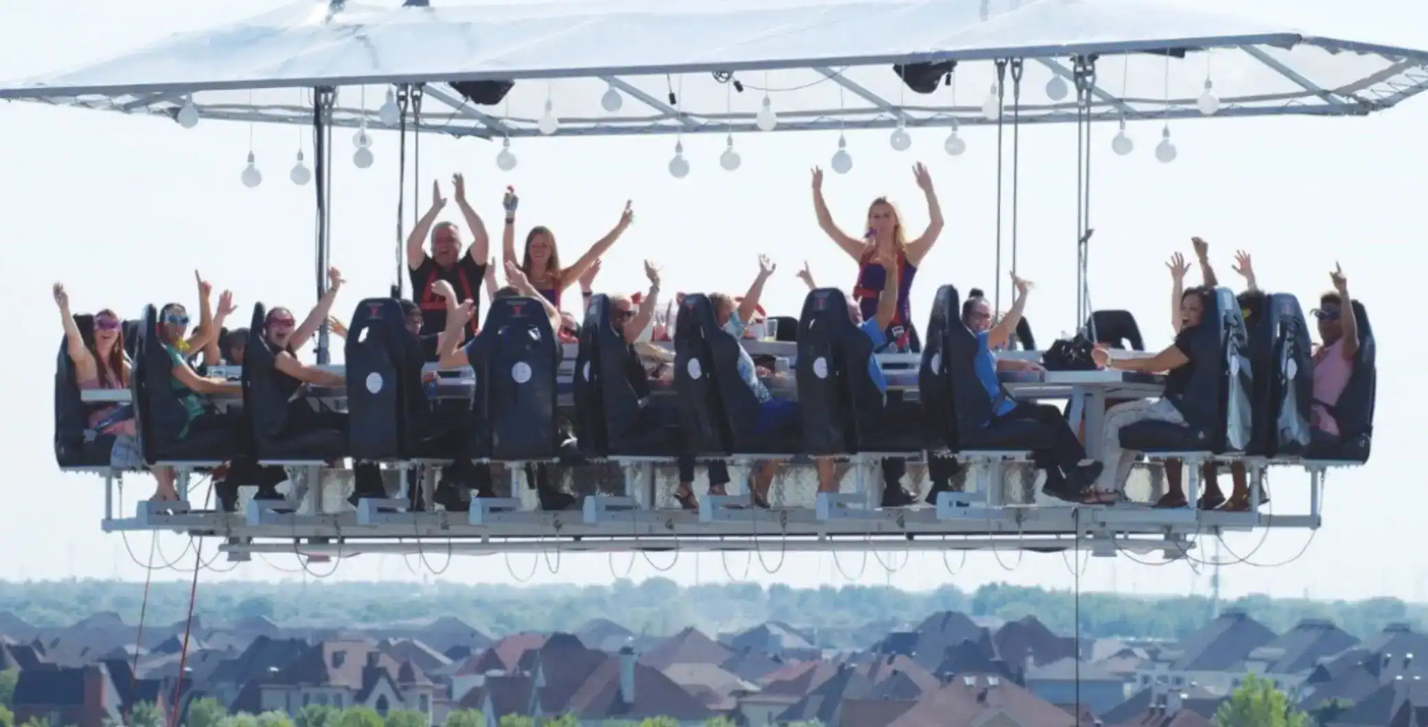 Strapped into a floating “Chef’s Table” with just 21 other diners, guests will get front-row views as each course is freshly prepared and served midair by top chefs.