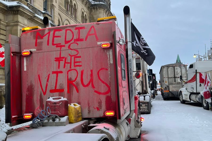 Sloly went as far as to raise the spectre of trucks being used as weapons,mentioning U.S.-backed financial support for the protest. He says now that the goal is to “end the demonstration.” What gives? Public pressure for one – and opinion polls. Ottawa residents have been at their wit’s end. The issue has also become an embarrassment, not to mention a national security risk. The hands-off approach is sending more extreme elements among the convoy’s supporters the wrong message that they can pretty much do anything they want. Ottawa mayor Jim Watson also signalled the city’s intention earlier this week to seek a court injunction against the convoy.