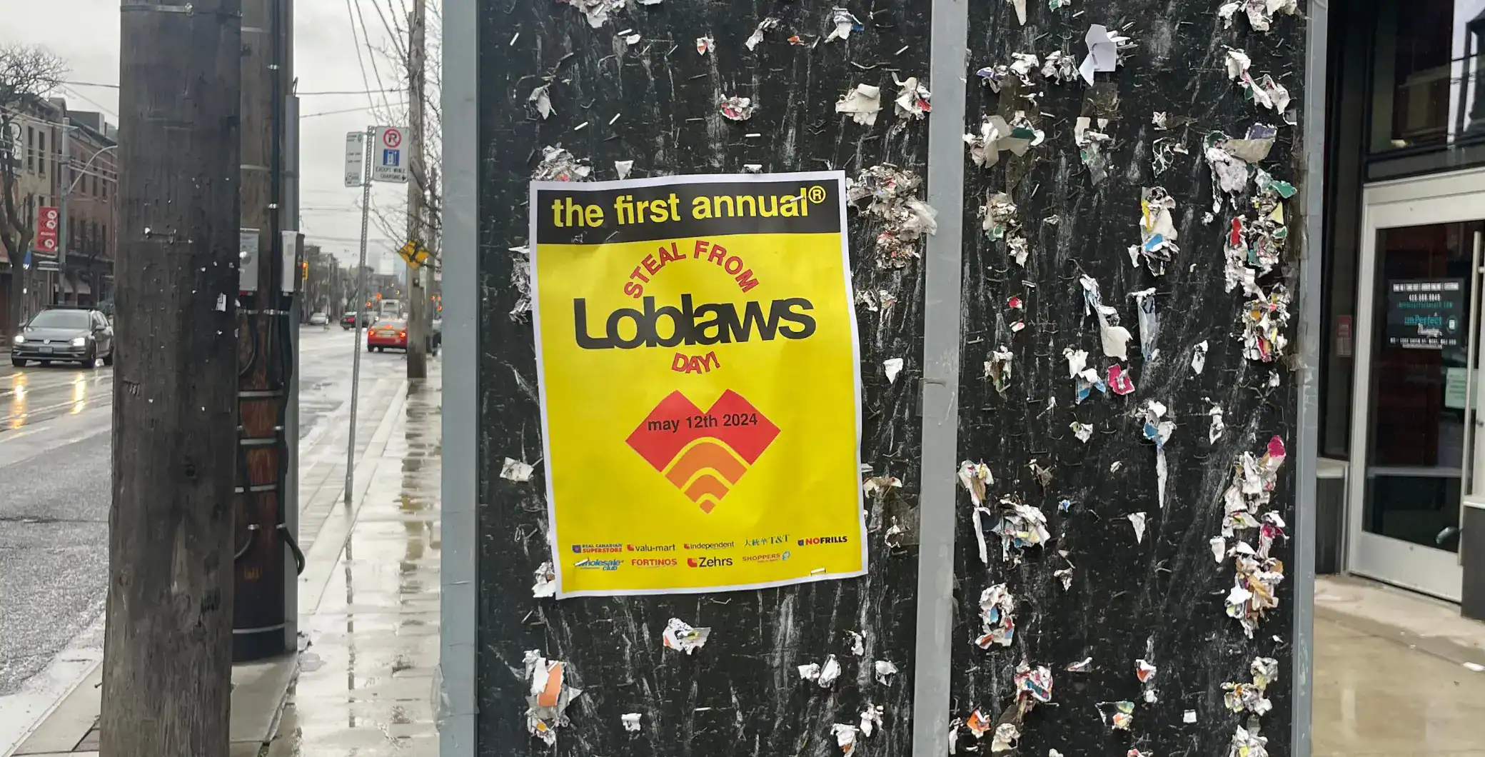 There are posters popping up around Toronto encouraging people to “steal from Loblaws” next month.