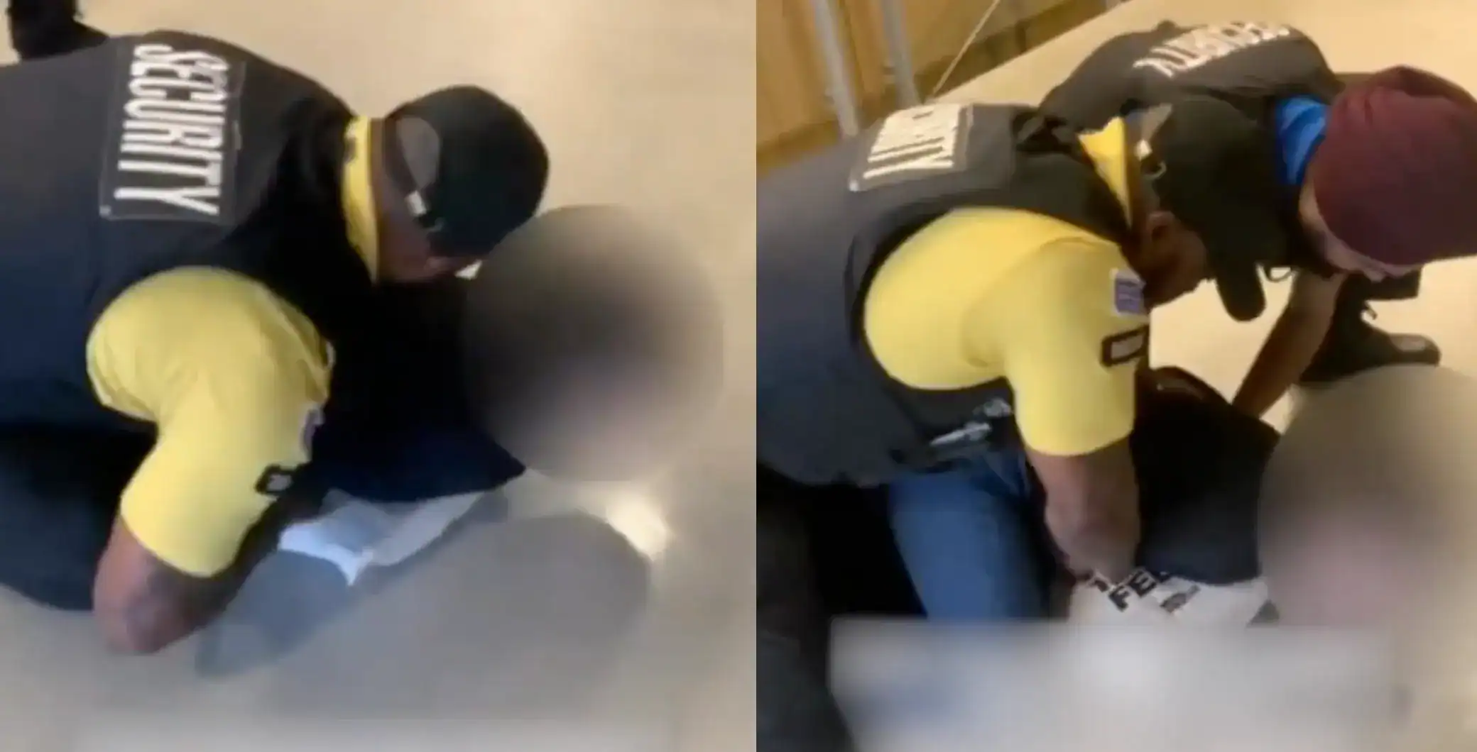 The video shows two security guards forcibly restraining and arresting the female student while she lay on the ground, at one point even screaming and yelling that she can’t breathe and was being hurt.