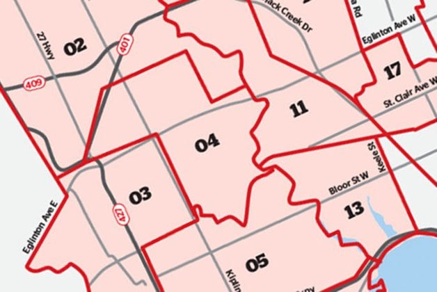 Hover over the ‘X’ to see each ward’s results. All results from the City of Toronto, and are still unofficial:
