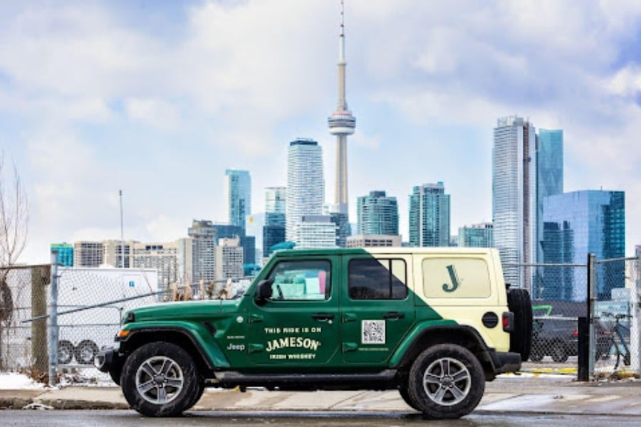- Spot a flashy, green Jameson Jeep, parked in high-traffic areas across Toronto.